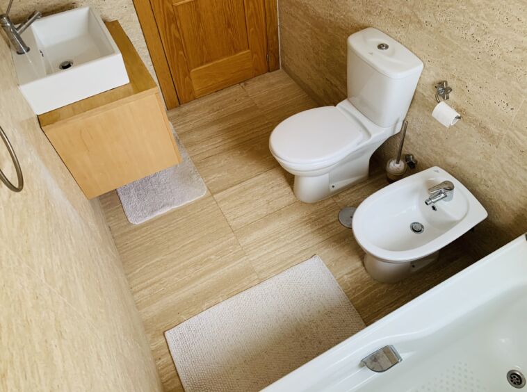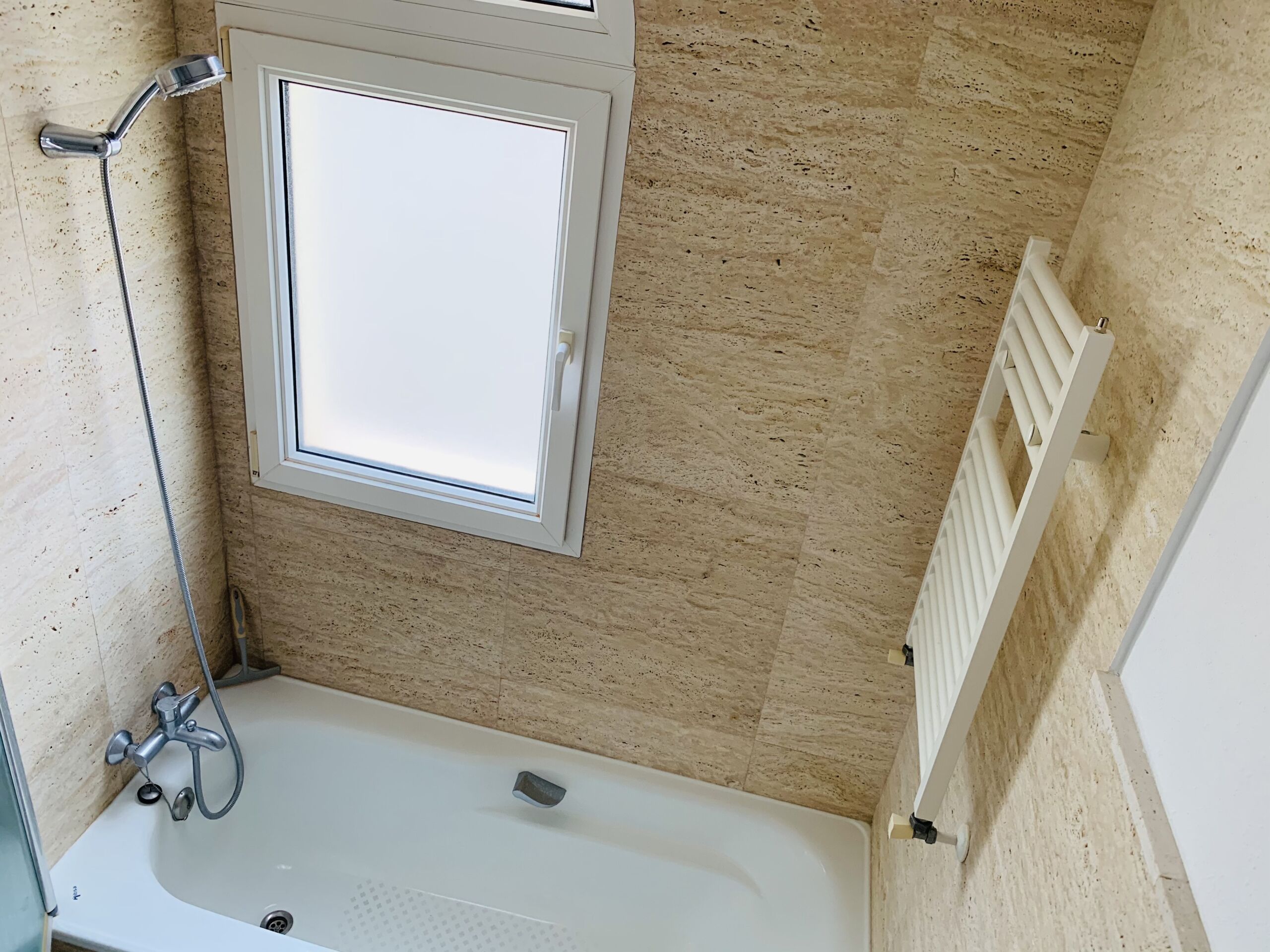 The apartment benefits from 2 bathrooms. Both bathrooms are finished with high quality Travertine wall and floor tiles. The main bathroom has a shower cubicle, while the en-suite has a bath fitted.