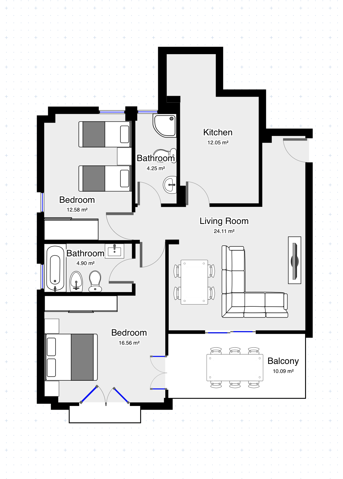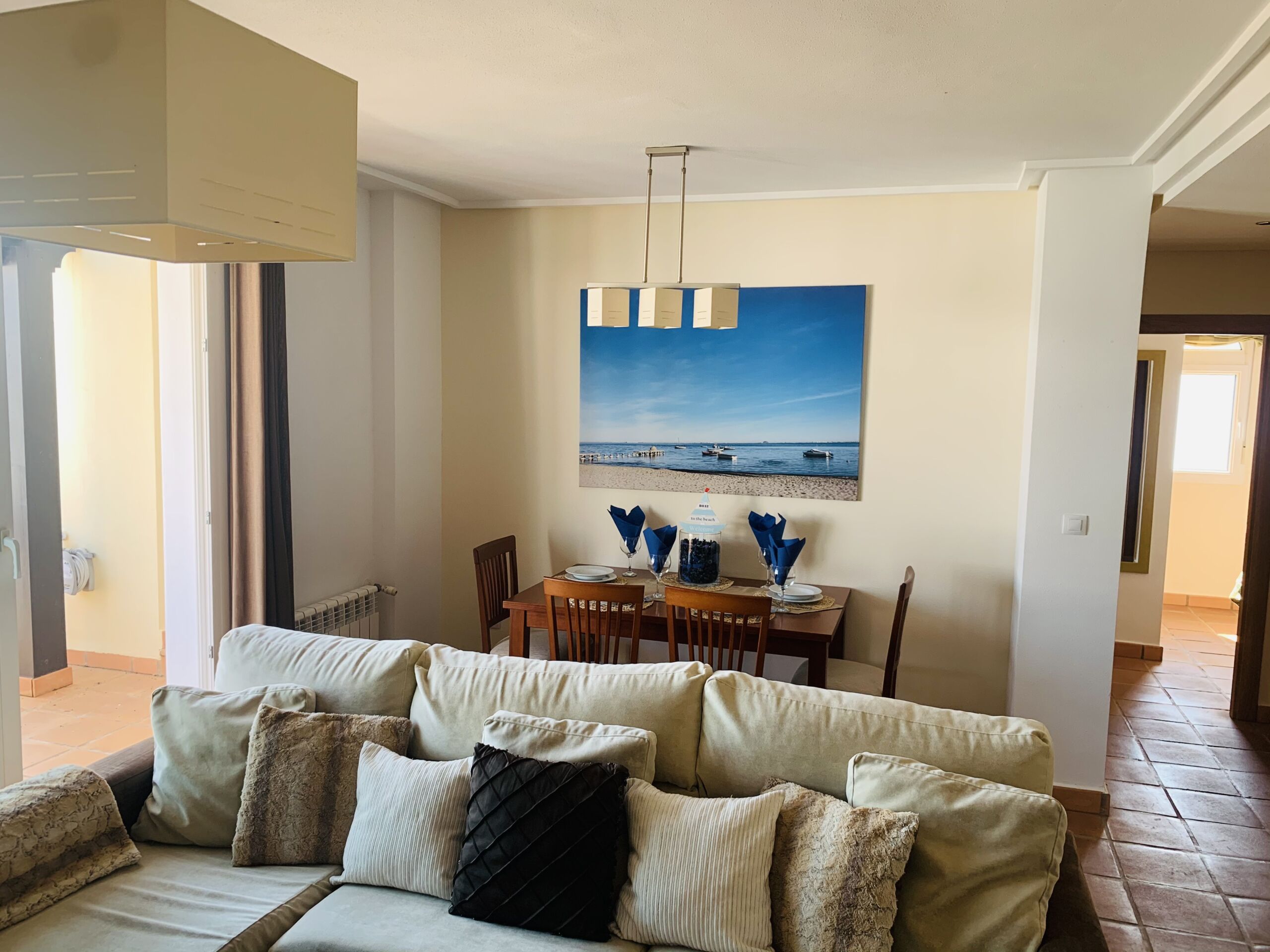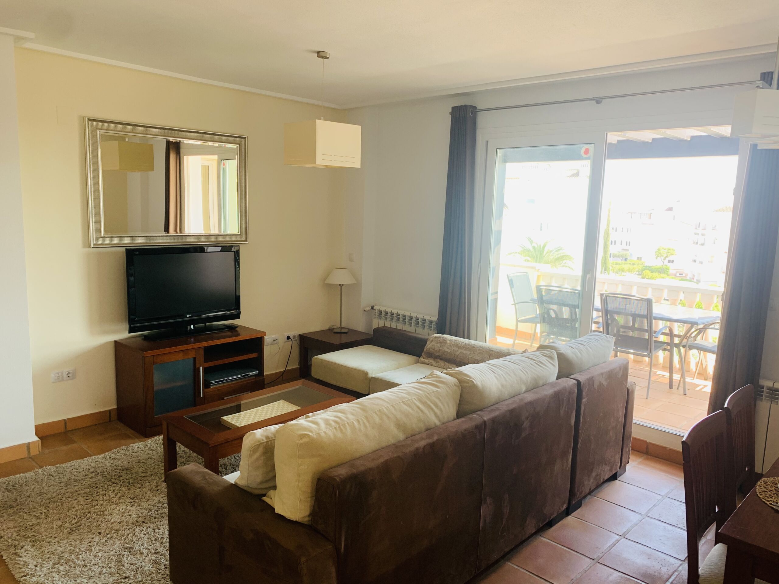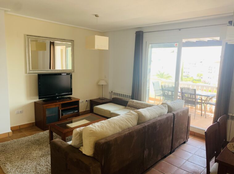 Entering the property, a short hallway leads you into a large lounge and dining area. Patio doors with views of the blue sky and resort, invites you to the terrace to enjoy the Spanish sun & dine alfresco.