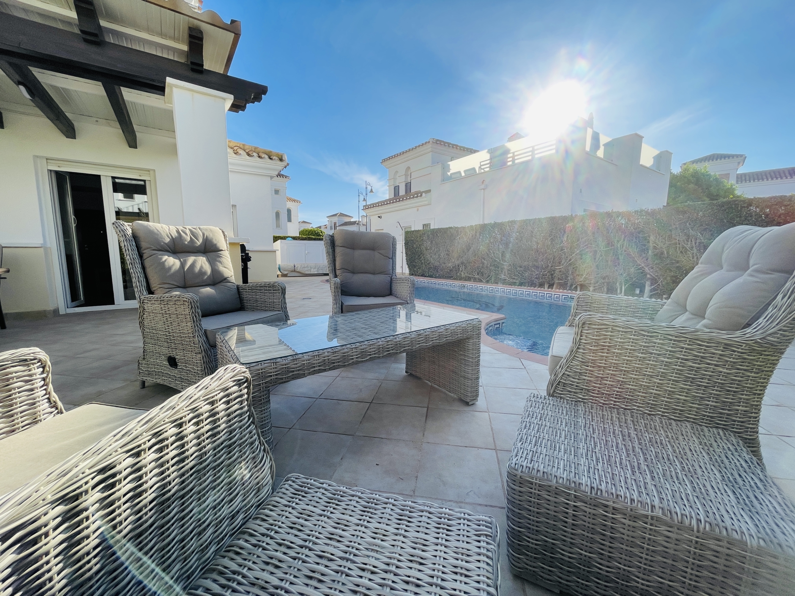 This beautifully presented 3 bedroom Enebro-type villa is located on the ever-popular La Torre Golf Resort and is offered in truly immaculate condition throughout. Used as a cherished family holiday home, the property has been maintained to the highest standard over the years, making it an ideal turnkey purchase.