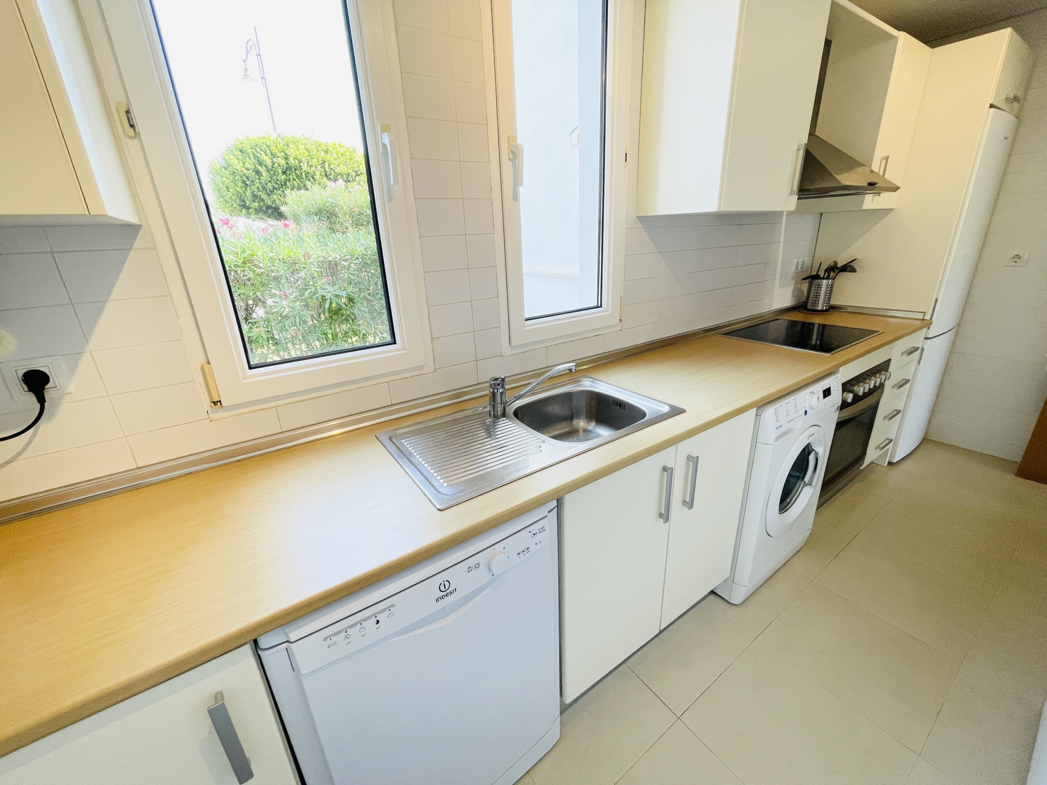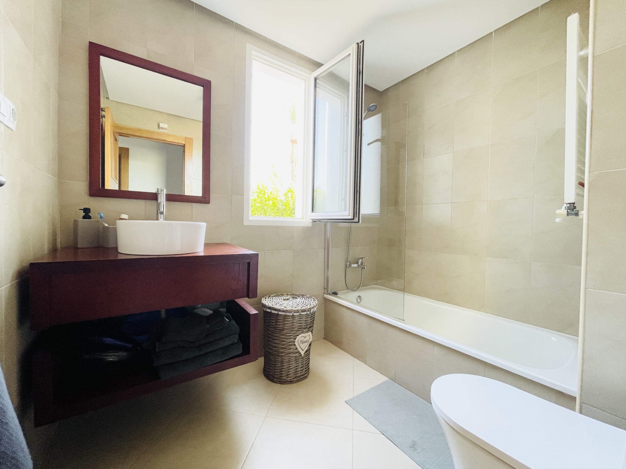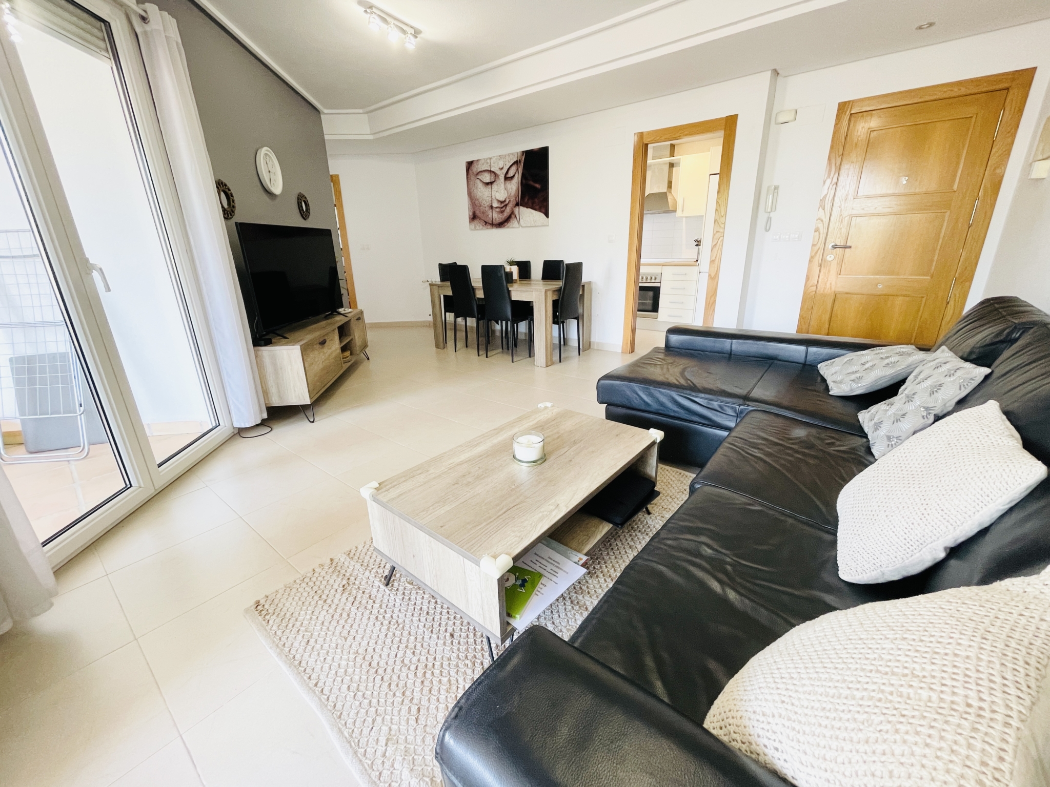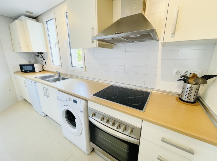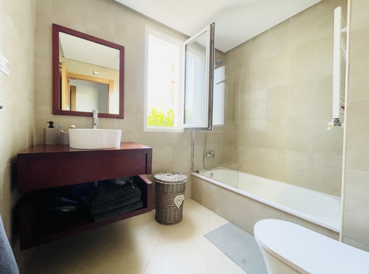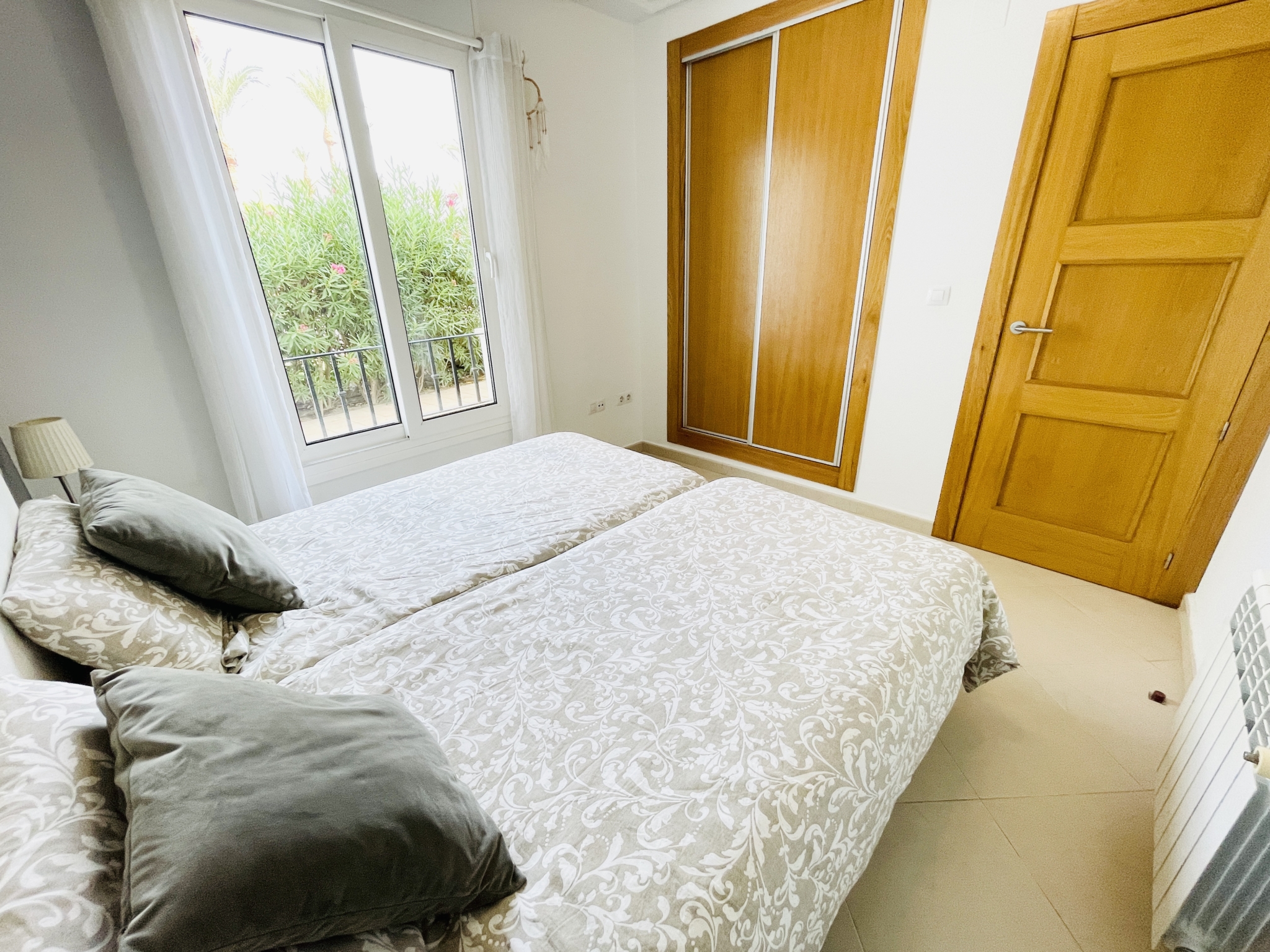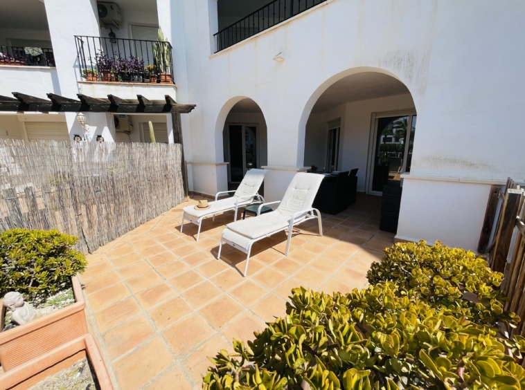The apartment features a spacious covered terrace – perfect for shaded dining and relaxation – which flows seamlessly onto an open terrace leading directly to landscaped gardens and the communal pool. With its south-facing orientation, you’ll enjoy all-day sunshine and a warm, light-filled home.