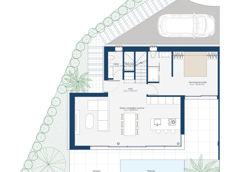Each villa has been thoughtfully designed to maximise space, privacy, and natural light. The open-plan living and dining areas flow seamlessly to expansive terraces and a private swimming pool, creating the perfect setting for outdoor dining, relaxation, and enjoying uninterrupted frontline golf views under Murcia’s year-round sunshine.