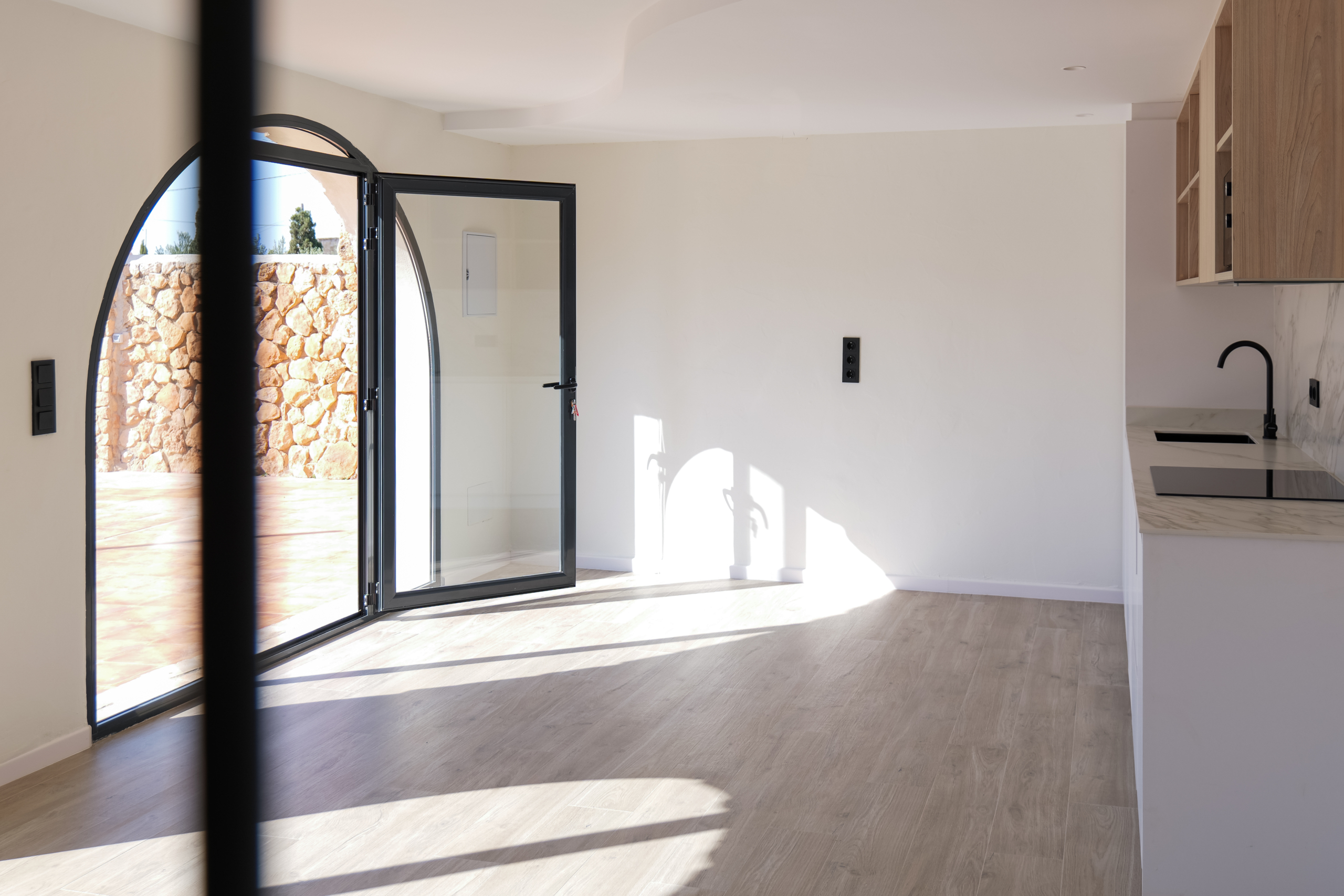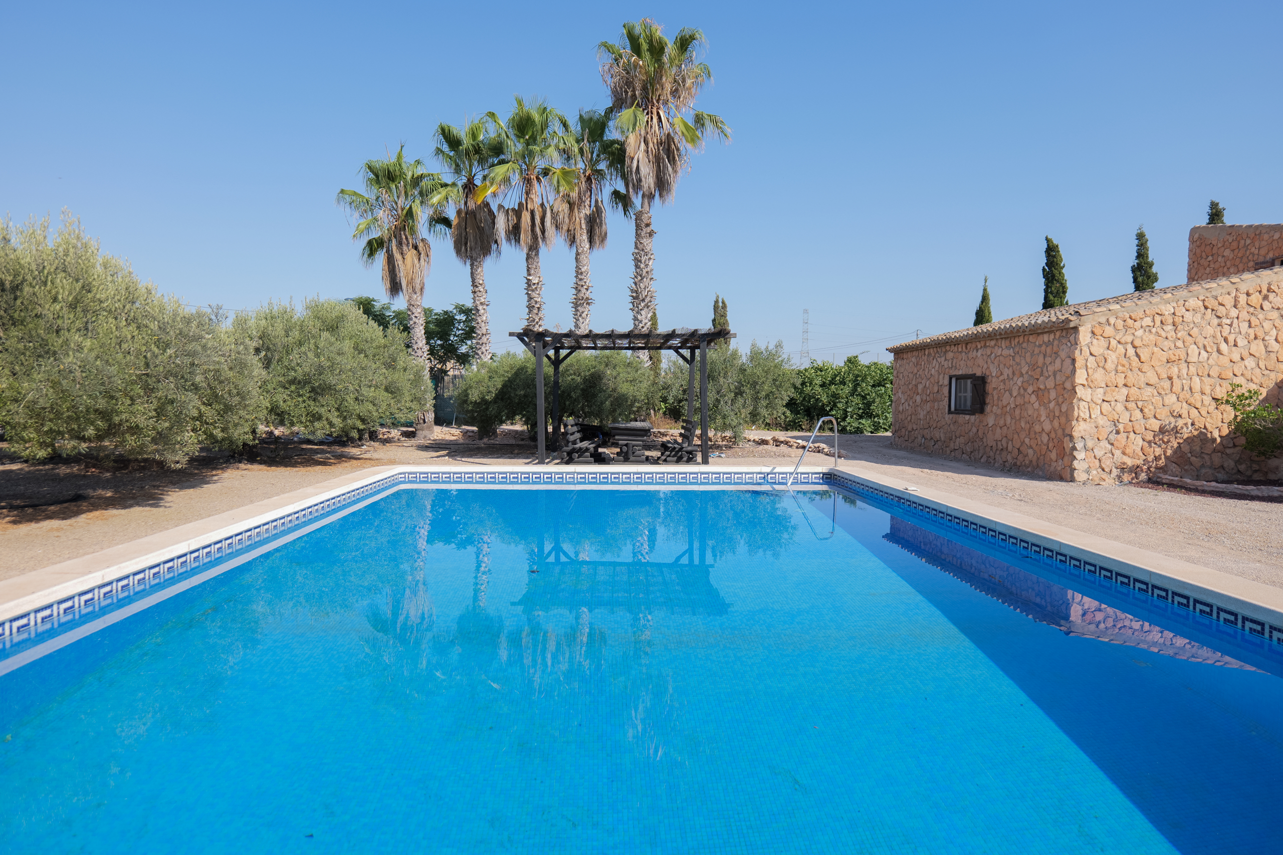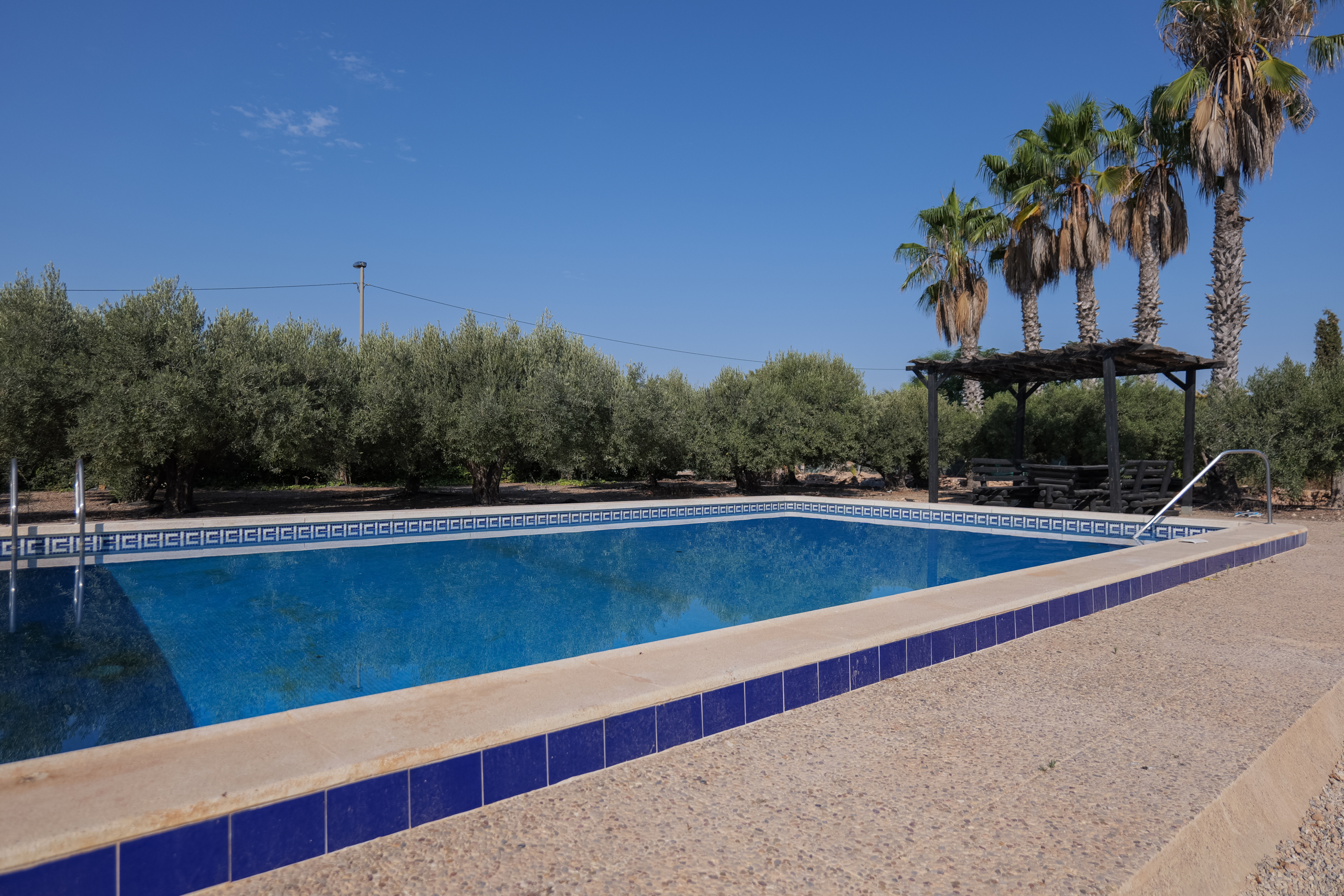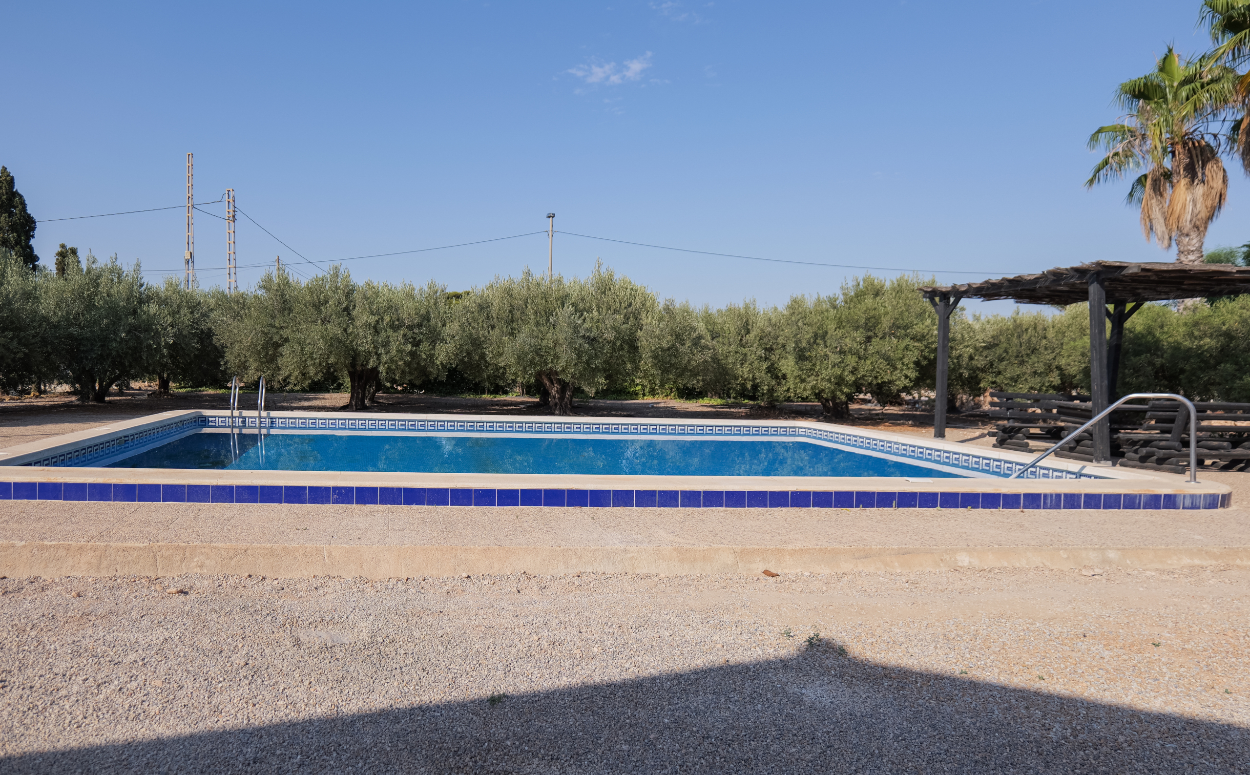 The expansive grounds offer a beautiful blend of open landscapes and cultivated areas, including a charming olive grove that enhances the character of the estate. A private swimming pool with an elegant pergola creates the perfect setting for soaking up the Spanish sunshine and enjoying long, relaxed days outdoors. Despite its tranquil setting, the property remains conveniently close to everyday amenities, offering the best of both worlds.