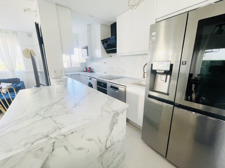 This beautifully upgraded frontline golf townhouse offers an exceptional lifestyle in one of the Costa Cálida’s most established and sought-after resorts. Positioned as an end-of-terrace property, it enjoys extra privacy, abundant natural light, and a superb location overlooking the 5th Green of the Jack Nicklaus–designed golf course.