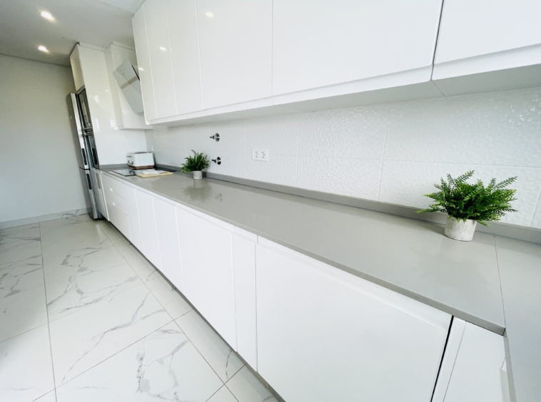 The lounge has been stylishly extended, offering a bright and spacious living area with a clean, modern design—perfect for both relaxing and entertaining. The extended kitchen is equally impressive, featuring gloss white cabinetry, a quartz work surface, and beautifully selected splash-back tiling, combining practicality with elegant design.