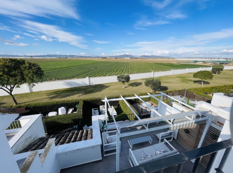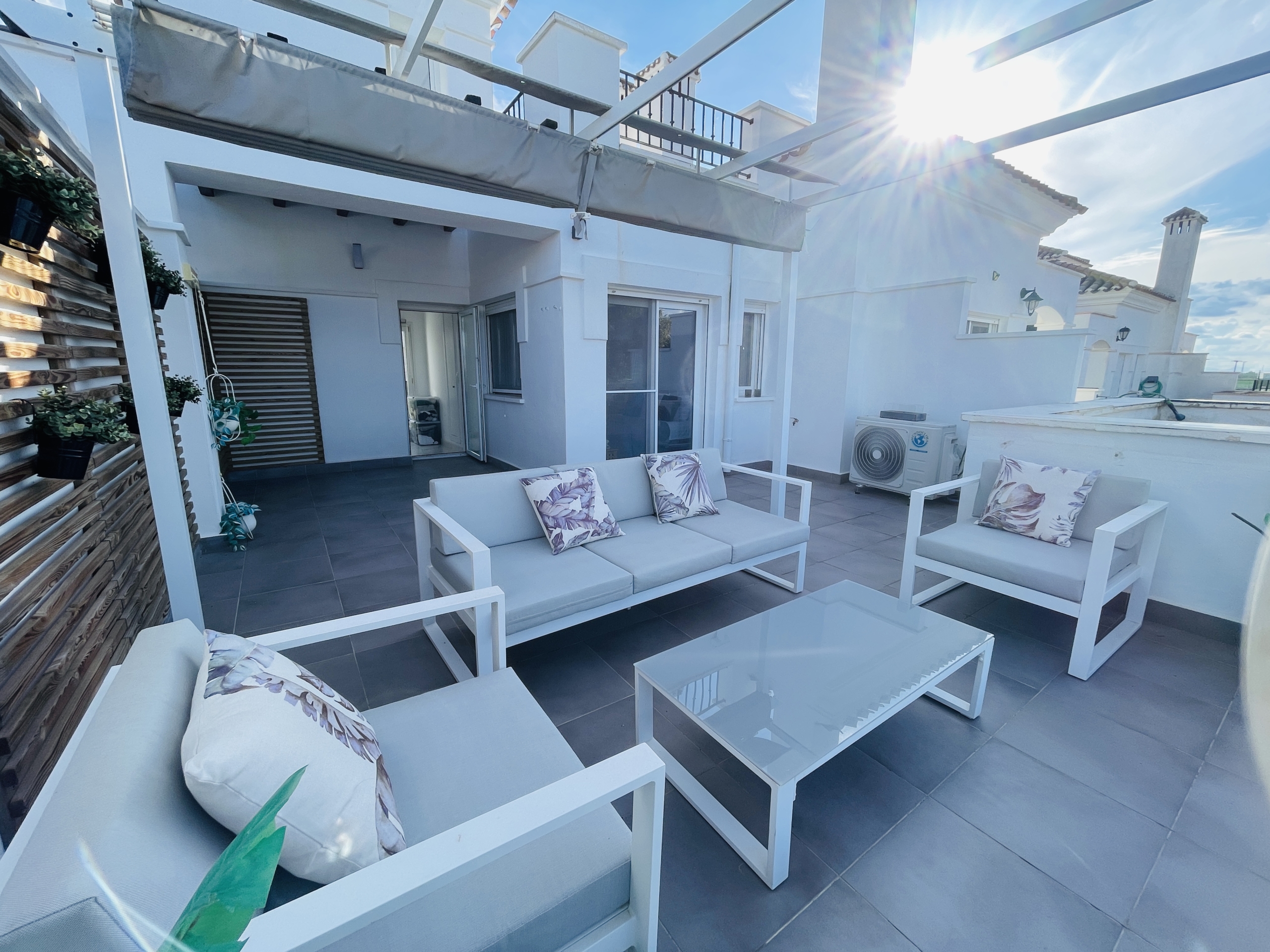 The townhouse further benefits from a third level, featuring a small landing area that is perfect for additional storage or could easily be used as a compact home office. From here, you access the rooftop solarium, which enjoys all-day sunshine and provides an excellent space for sunbathing, entertaining, or simply taking in the resort views.